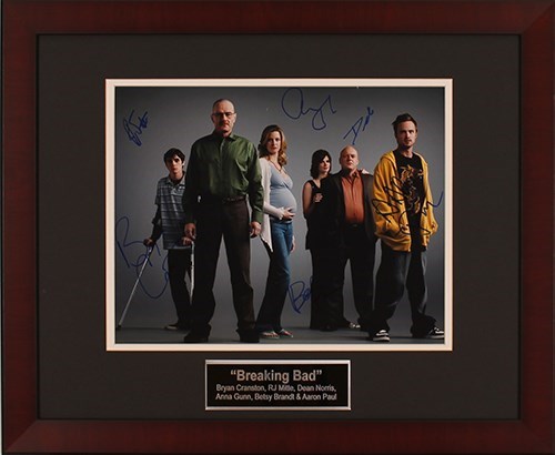 Own a piece of television history with this framed 11x14 cast photo from Breaking Bad, signed by the show’s legendary stars: Bryan Cranston, RJ Mitte, Dean Norris, Anna Gunn, Betsy Brandt, and Aaron Paul. This groundbreaking series captivated audiences with its intense storytelling and unforgettable characters, earning its place as one of the greatest TV dramas of all time. Perfect for any fan or collector, this rare autographed display is a must-have centerpiece for your collection. Don’t miss the chance to claim this iconic keepsake!