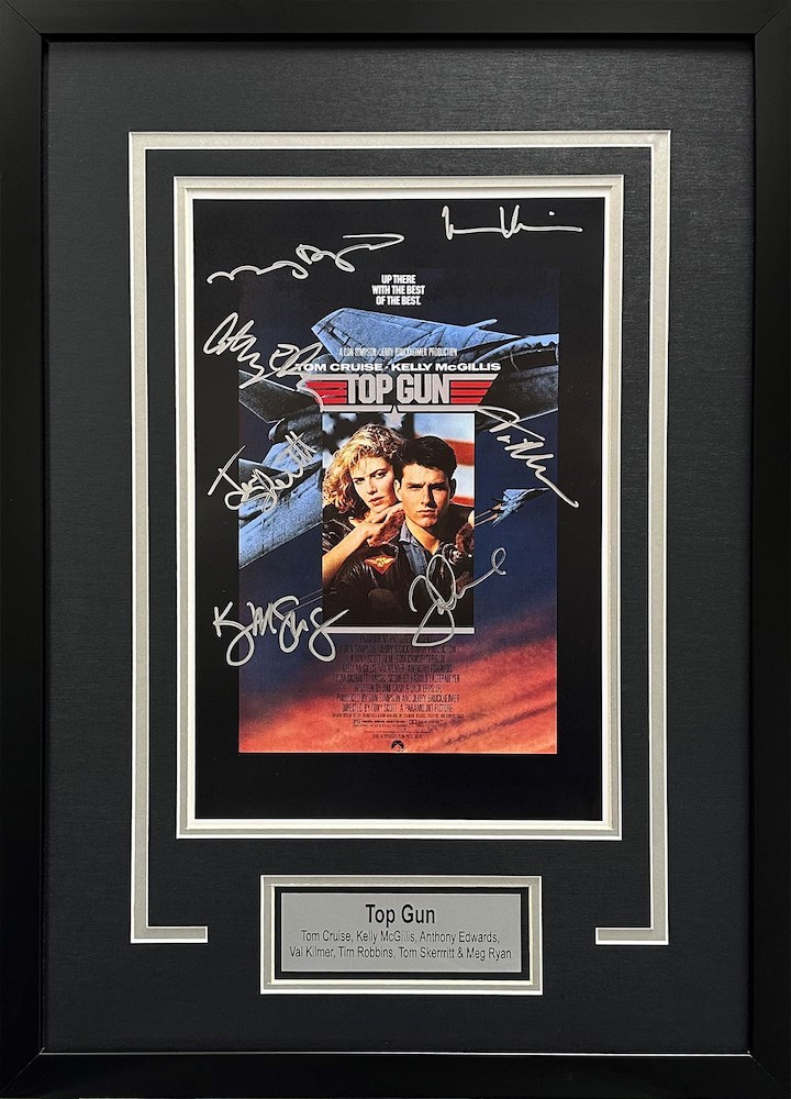 Take Home a Piece of Movie History! Get ready to feel the need for speed with this epic, one-of-a-kind collectible—a framed 11x17 movie poster from the original Top Gun, signed by the entire primary cast! Featuring autographs from Tom Cruise, Kelly McGillis, Anthony Edwards, Val Kilmer, Tim Robbins, Tom Skerritt, and Meg Ryan, this rare piece of cinematic history is the ultimate prize for any movie buff or aviation enthusiast. Whether you're a lifelong Top Gun fan or a collector of Hollywood memorabilia, this stunning display will be a bold centerpiece in any home, office, or man cave. Don't miss your chance to own a legendary slice of 80s action-movie greatness—bid now before this treasure flies away!