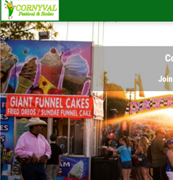 Help the Cornyval Celebrate 60 years with this day long access. Private VIP area at the main pavillion, seating for 4 people. Access to whole Cornyval event. Gates open at 5pm Musical Entertainment for Thursday May 1st: 5-6pm Bryan Bros 6:30-7:30pm Meyer Anderson 8-9:30p Love Killed a Hero 10-11:30pm Spazmatics