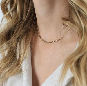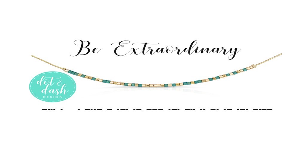 An encouraging reminder to live up to your potential every day. This remarkable Morse code necklace features jade green and champagne glass beads. Necklace length is 16.5 inches.