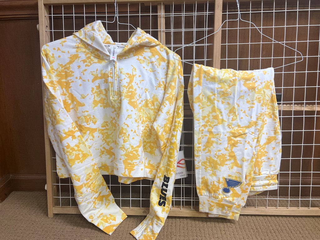 Stay cozy, look fierce! This women’s L hoodie and jogger combo is your go-to outfit for cheering on the Blues and leading the Blue Crew in style, all while enjoying ultimate comfort.