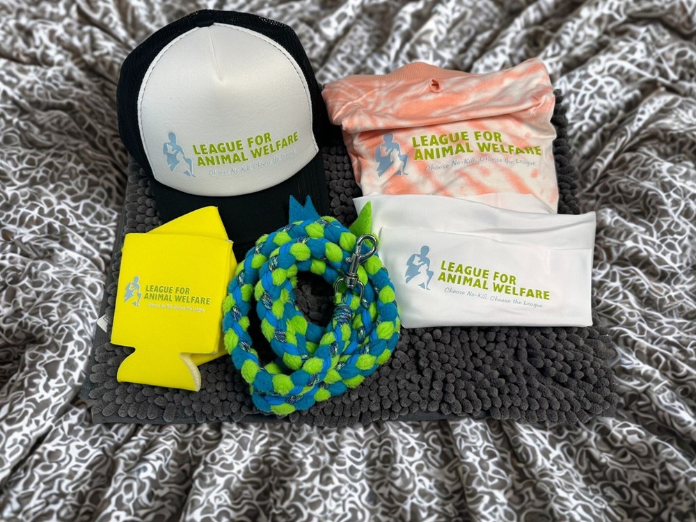 Show off your League pride for both you and your furry friend with this fun, coordinated package from Wretched Swank: -Trucker Hat – stylish and sporty for the human fan. -Two Dog Outfits & Two Dog Bandanas – dress your pup in League spirit -Two Can Koozies – keep your drinks cool while cheering on your favorite shelter -Dog Leash – walk your pup in style