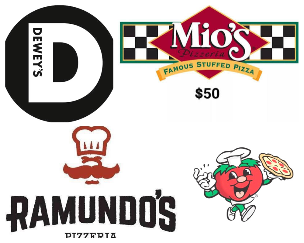 Donated by: Dewey's Pizza / Snappy Tomato Pizza / Ramundo's / Mio's
