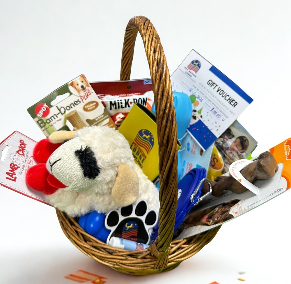 Treat your furry friend to the best! This package includes a $100 Gift Card to Pet Nation Lodge, perfect for boarding, daycare, or grooming services. To make tails wag even more, we’ve added a selection of delicious dog treats and toys your pup will love. A thoughtful gift for pet parents and their four-legged companions!