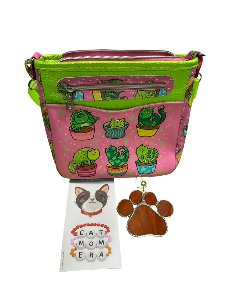 Cat bag... Cactus bag... CATCTUS BAG? I'm not sure but I LOVE IT and so will you. Handmade by Cherries Please on Etsy! The accompanying paw print suncatcher was also handmade and donated by Mike Schneider