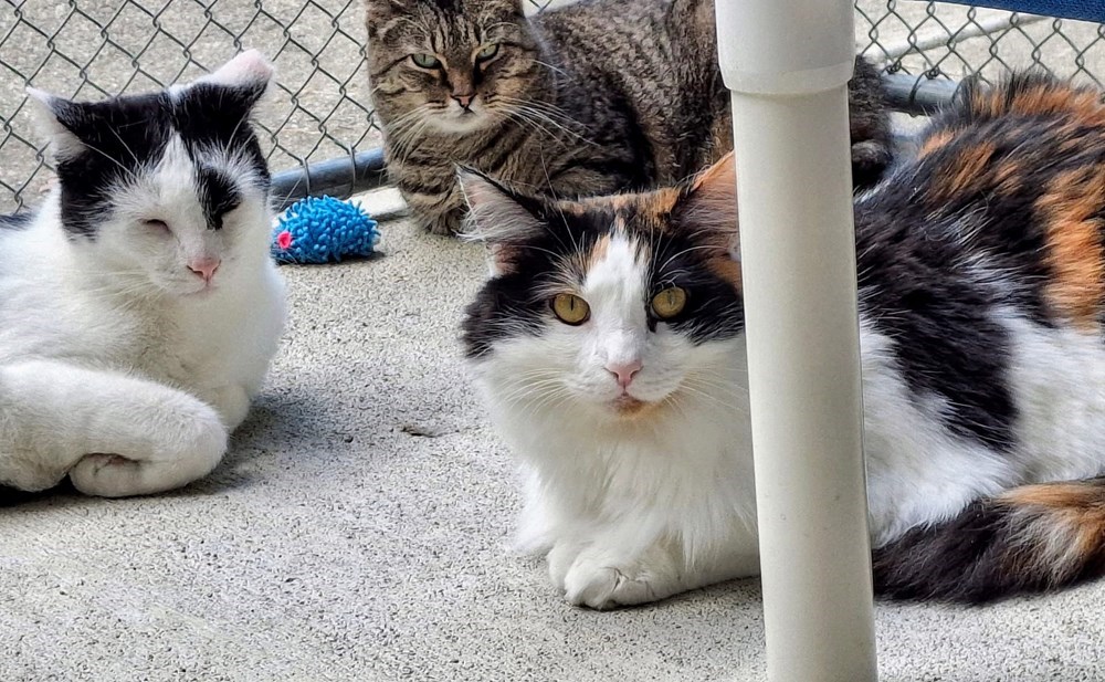 Feed a cat room for a week - $65 donation Photo: Bailey, Valda and California- all adoptable at the League.