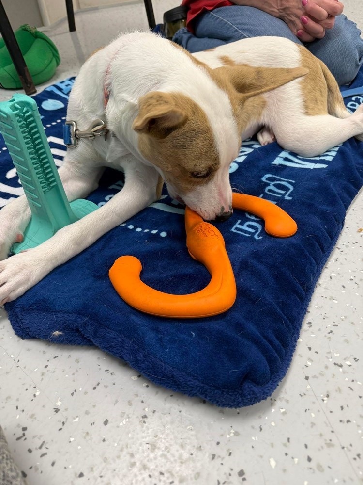 Entertain a bored dog with an interactive toy - $15 donation Photo: Tess - available for adoption at the League! Tess is super cute! She showed up with her siblings, Domino and McKenzie. Don't miss the chance to take one of these adorable little ones home!