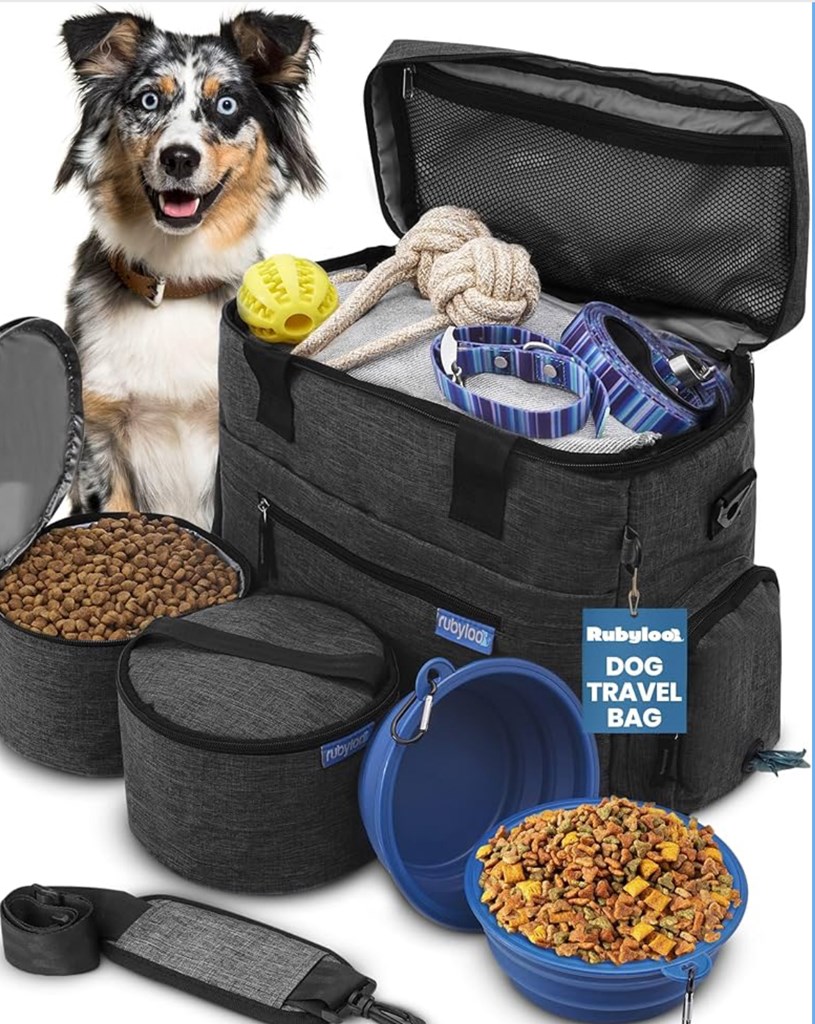 Perfect accessories for your adventure out with the dog! -The Original Doggy Bag™ - Complete Dog Travel Bag for Supplies with 2 BPA-Free Travel Dog Bowls & 2 Pet Food Containers -Two custom made, pet themed tumblers