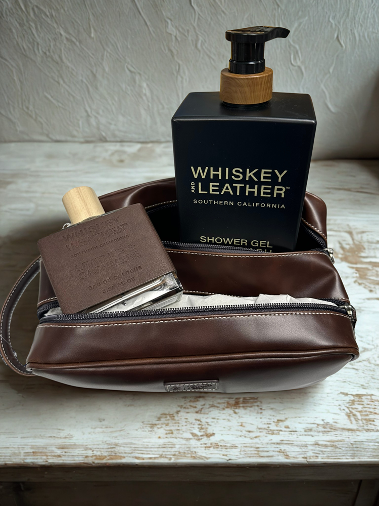 Elevate his grooming routine with this stylish and sophisticated set: -Men’s Toiletry Bag – sleek and practical for travel or daily use. -Whiskey & Leather Body Wash – rich, warm scent for a refreshing shower experience. -Whiskey & Leather Cologne – a rugged, captivating fragrance to complete the look. Bid now to give him the gift of style, sophistication, and signature scent!