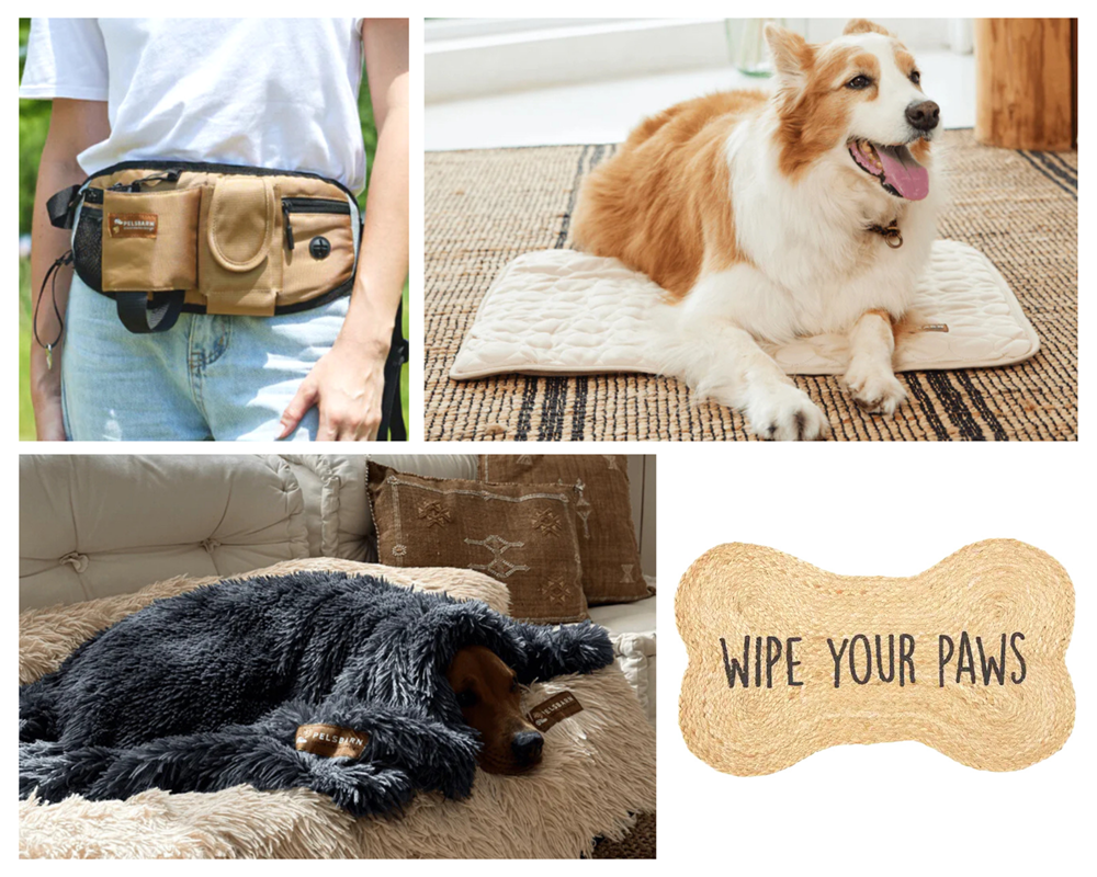 Give your furry friend the ultimate comfort and style with this delightful collection! Welcome guests with a charming Mudpie Jute Doormat while keeping all your essentials handy in the Pelsbarn All-In-One Walking Bag. Help your dog relax with the cozy Pelsbarn Calming Relief Blanket (Tan), and keep them cool on warm days with the innovative Pelsbarn Cooling Mat (Tan). ADDED- Pelsbarn protecting car bed in Navy Blue. Perfect for pet parents who want both convenience and care for their four-legged family members!